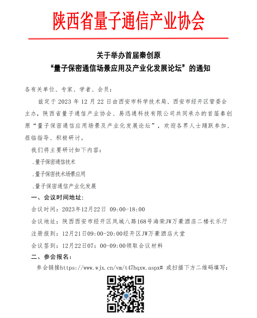 关于举办首届秦创原“量子保密通信场景应用及产业化发展论坛”的通知